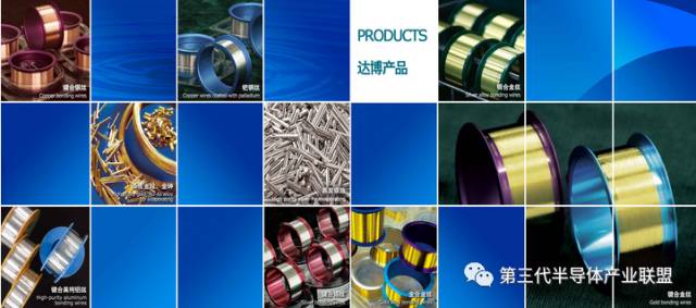 公司的主要产品为集成电路(IC、LSI、ULSI)、半导体分立器件(TR)和半导体照明(LED)封装用键合金丝、键合铜丝、键合银丝及各种合金丝系列产品,同时还生产芯片背金蒸镀用蒸发金、蒸发金砷、蒸发银的丝材和段材。达博公司拥有完整的键合金丝、铜丝、银丝生产线,生产设备及检测仪器达到国际先进水平,每年可提供10亿米以上的键合丝。