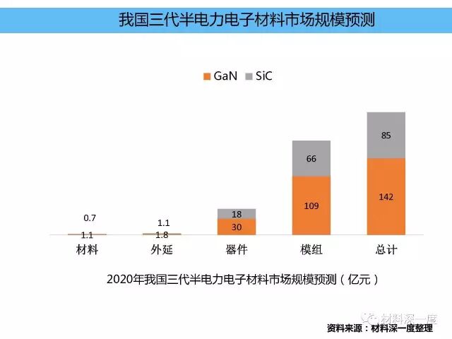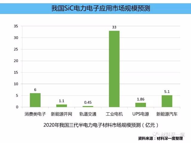 据材料深一度预测,至2020年,我国SiC电力电子应用市场规模(包括衬底、外延、器件在内)将达到47.5亿元。