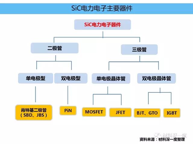 SiC电力电子器件主要包括功率二极管和三极管(晶体管、开关管)。