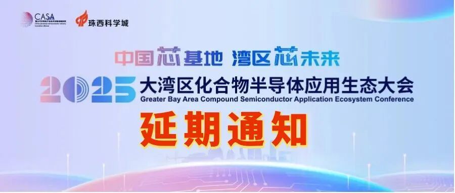因与珠海市重要会议时间冲突,经当地政府、主办方研究审慎决定,原计划于2025年12月6-7日在珠海举办的“2025大湾区化合物半导体应用生态大会”将延期举办,具体会议时间另行通知。