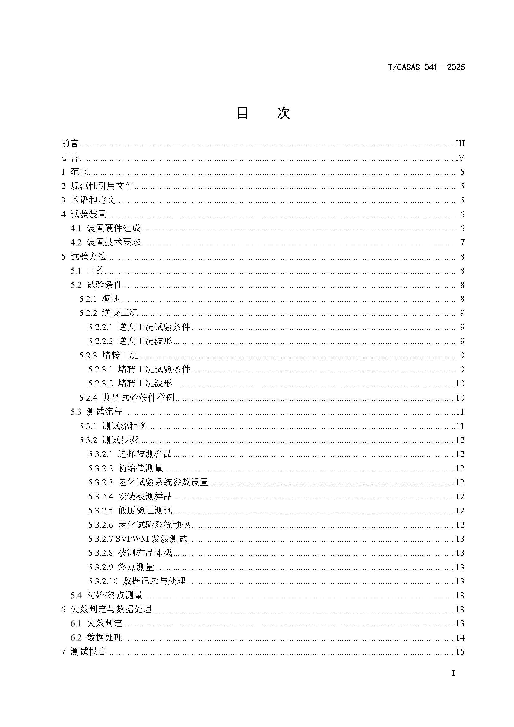 T/CASAS 041—2025《基于感性负载的SiC 功率模块老化筛选试验方法》描述了SiC功率半导体模块的变频输出测试方法(基于无功负载),包括:测试装置、测试程序以及失效判据。
